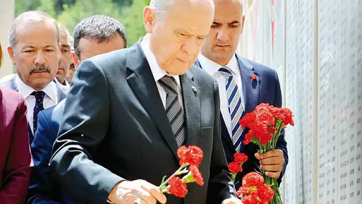 Bahçeli dün Kızılcahamam’da Ülkücü Şehitleri Anma Günü’nde özetle şunları söyledi: “Bizim çağın dar kalıplarına sığmayan ülkülerimiz, güdük ve güdümlü akılların alamayacağı hedeflerimiz vardır. Bizim Kızılelma ülkümüz vardır. Türk milletinin istikbal ve istiklalini korumak, geleceğin güçlü ve büyük Türkiyesini kurmak öncelikli hedeflerimiz arasındadır. Devlet ve milletimizin bekasını teminat altına almak, iç ve dış tehditlere karşı uyanık olmak geçmişe karşı borcumuz, geleceğe karşı sorumluluğumuzdur.