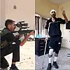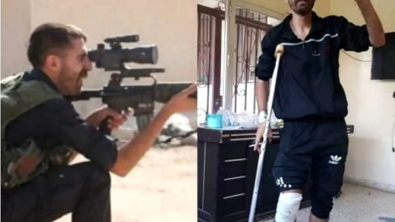 Resulayn'da objektiflere yansıyan bir karede YPG'li terörist dürbün kapağını açmadan nişan alıp ateş etmişti. Sosyal medyada paylaşılan fotoğraf ise alay konusu olmuştu. İşte o teröristten yeni fotoğraflar geldi. Çatışmada vurulan terörist artık koltuk değneğiyle geziyor.
