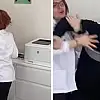 Şahıs o anları cep telefonu ile kayda aldı. Görüntülerde doktorun babaya doğru hamleler yaptığı ve araya giren klinik görevlilerinin kendisini sakinleştirmeye çalıştığı görüldü. Sinirlerine hakim olamayan doktorun bir ara eline tahta bir obje aldığı da videoda yer aldı.