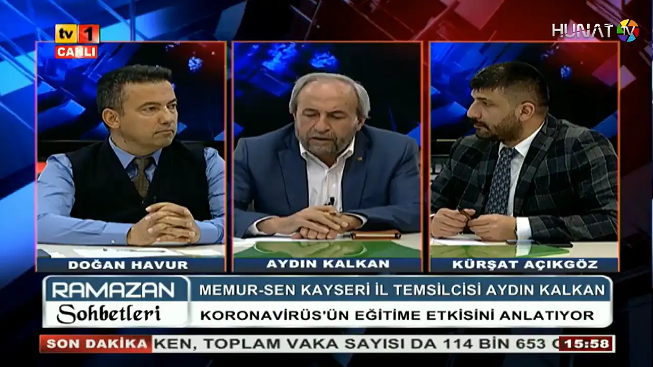 Eğitim Bir Sen Kayseri Şube Başkanı Aydın Kalkan TV1 ve Hunat TV ortak yayınında TV1 Genel Yayın Yönetmeni Doğan Havur ve Hunat TV Genel Yayın Yönetmeni Kürşat Açıkgöz'ün hazırlayıp sunduğu Ramazan Sohbetleri Programına konuk oldu.Kalkan, pandemi sürecind