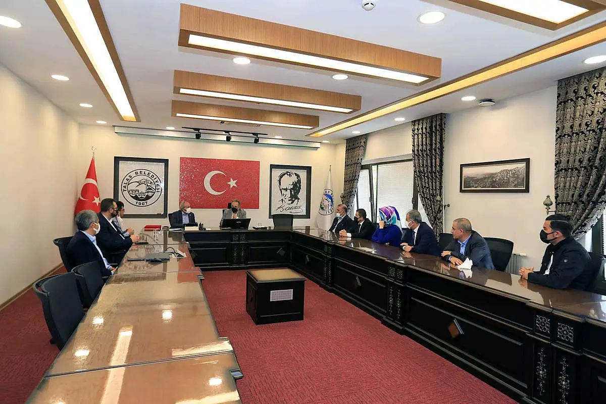 Başkanlık Toplantı Salonu’nda gerçekleşen ziyarete Eğitim-Bir-Sen Kayseri Şube Başkanı Aydın Kalkan’ın yanı sıra sendika yönetim kurulu üyeleri de katıldı.