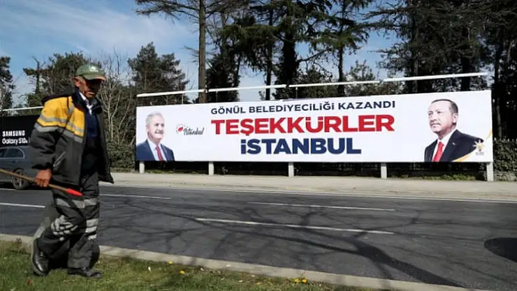 AK Parti'nin İstanbul'a astırdığı 'Teşekkürler İstanbul gönül belediyeciliği kazandı' afişi, Ekrem İmamoğlu'nun mazbata almasıyla indirildi.Seçimleri kaybeden AK Parti'nin İstanbul'un dört bir tarafına astığı 'Teşekkürler İstanbul Gönül Belediyeciliği Kaz