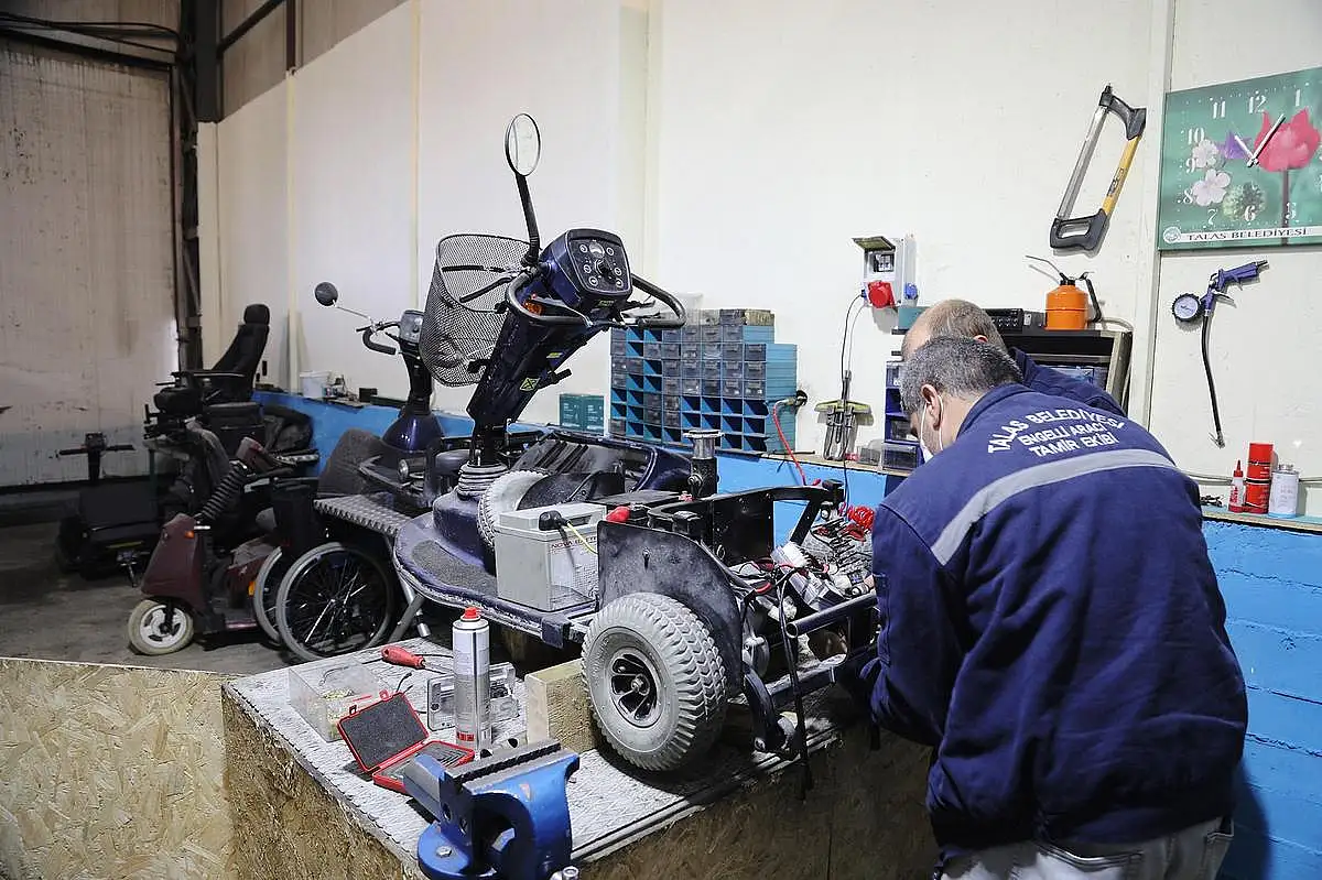 Talas Belediyesi Engelli Araçları Bakım Onarım Ünitesi önemli bir toplumsal soruna çözüm getirmeye devam ediyor.Talas Belediye Başkanı Mustafa Yalçın tarafından hayata geçirilen Engelli Araçları Bakım Onarım Ünitesi'nde engelli vatandaşların arızalı araçl