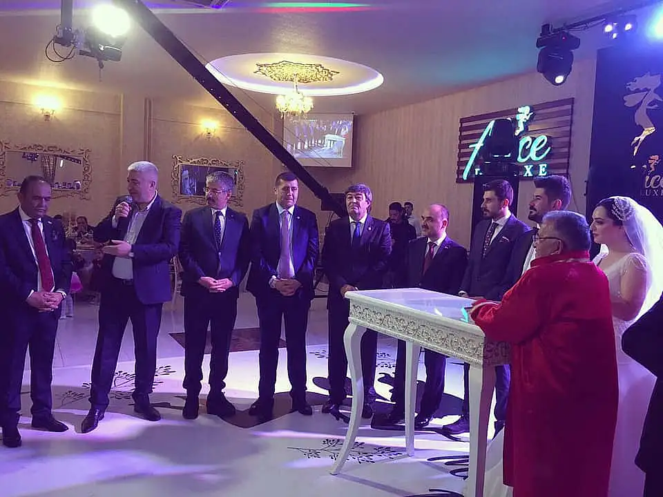 Kayseri Telgraf Gazetesi Genel Yayın Yönetmeni duayen gazeteci Oktay Ensari’nin kızı Merve Ensari Furkan Küçük ile dünya evine girdi. Görkemli bir düğün töreni ile hayatlarını birleştiren Merve ve Furkan çiftini tüm eş, dost, akraba ve yakınları da mutlu günlerinde yalnız bırakmadı. Alice Deluxe Düğün Salonu’nda gerçekleştirilen düğün merasimine Kayseri Valisi Şehmus Günaydın, Kayseri Büyükşehir Belediye Başkanı Memduh Büyükkılıç, MHP Kayseri İl Başkanı Serkan Tok, AK Parti Kayseri İl Başkanı Şaban Çopuroğlu, MHP Kayseri Milletvekili Baki Ersoy, İYİ Parti Kayseri Milletvekili Dursun Ataş, Talas Belediye Başkanı Mustafa Yalçın, Kayseri Ticaret Odası Yönetim Kurulu Başkanı Ömer Gülsoy, İpek Mobilya Yönetim Kurulu Başkanı Saffet Aslan, Ak Parti Melikgazi İlçe Başkanı Gökhan Ülke, Diyanet İşleri Eski Başkan Yardımcısı ve Kayseri Eski Müftüsü Necmettin Nursaçan, Kayseri Gazeteciler Cemiyeti Başkanı Veli Altınkaya, Kayseri Meydan Gazetesi İmtiyaz Sahibi Rifat Açıkgöz ve Hunat TV Genel Yayın Yönetmeni Kürşat Açıkgöz katıldılar. Nikah şahitliğini MHP İl Başkanı Serkan Tok ve MHP’li vekil Baki Ersoy’un yaptığı düğünde çift nikah cüzdanlarını Kayseri Büyükşehir Belediye Başkanı Memduh Büyükkılıç’ın elinden aldı. -