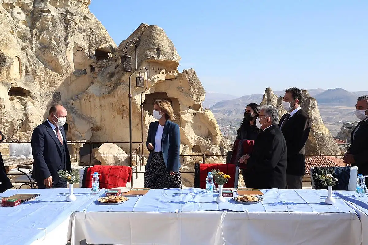 Ürgüp Yunak Evleri Toplantı Salonu’nda düzenlenen toplantıya Kayseri Büyükşehir Belediye Başkanı Dr. Memduh Büyükkılıç’ın yanı sıra Kayseri Valisi Şehmus Günaydın, Nevşehir Valisi İnci Sezer Becel, Kayseri İl Kültür ve Turizm Müdürü Şükrü Dursun ve Erciyes A. Ş. Yönetim Kurulu Başkanı Murat Cahid Cıngı ve turizmciler katıldı.