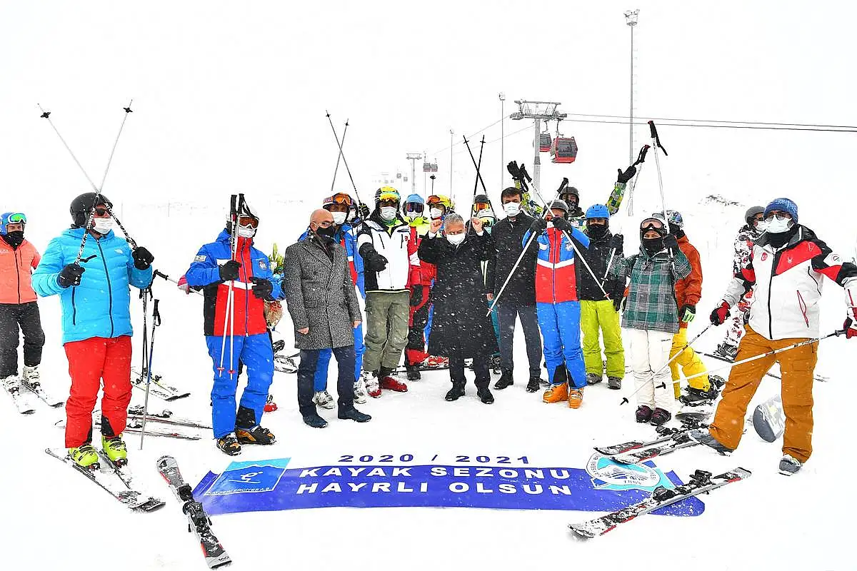 Sezon açılışında ilk olarak Türkiye Kayak Federasyonu’nda görevli kayakçılar tarafından açılan “2020-2021 kayak sezonu hayırlı olsun” yazılı pankart ile pistte kayak yapıldı. Daha sonra kayak eğitmenleri tarafından Başkan Dr. Büyükkılıç’a günün anısına çiçek takdim edildi.
