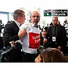 ÜZERİNDE YAZI YAZAN TİŞÖRTLE PROTESTO GERÇEKLEŞTİRDİ