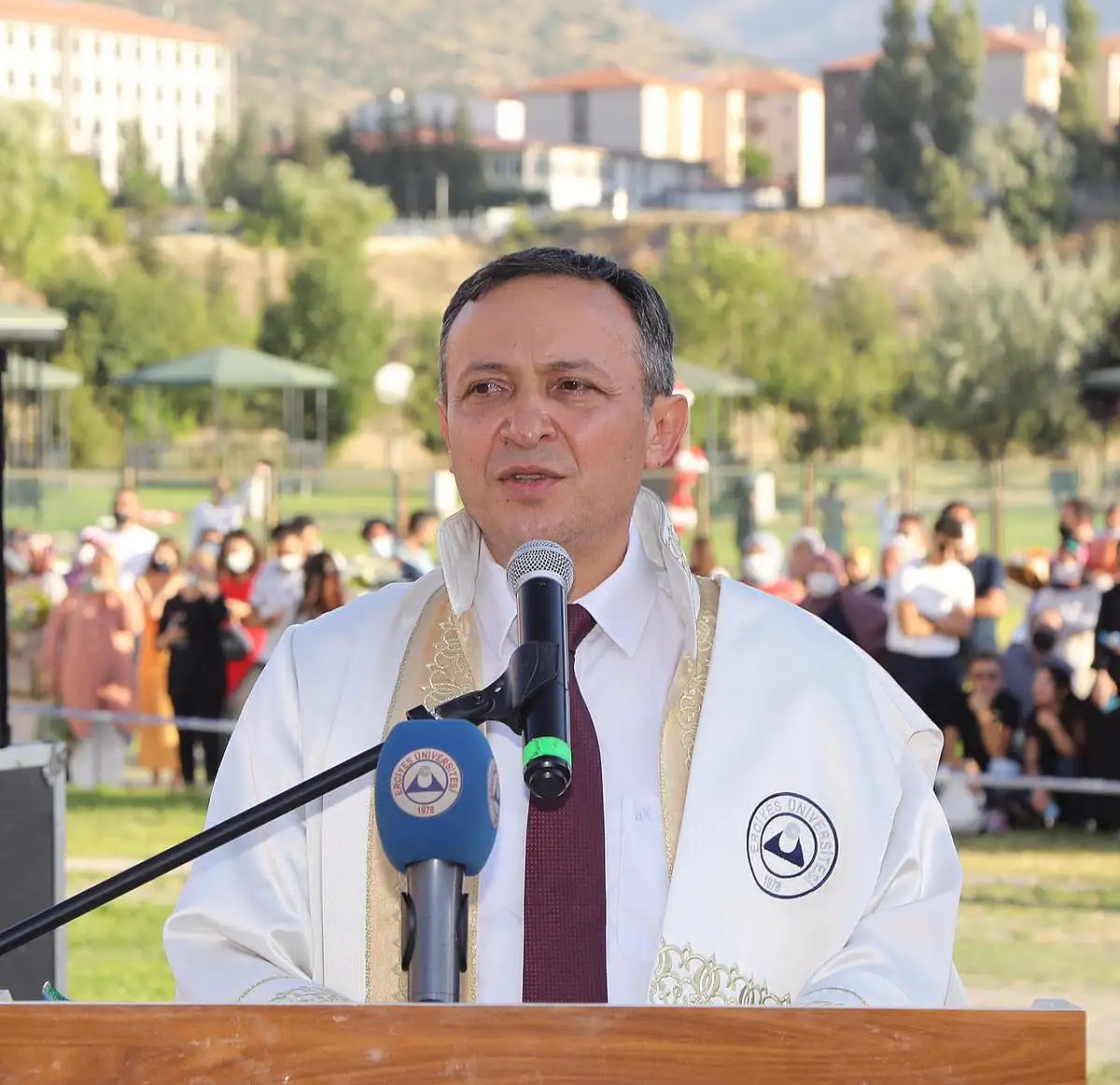 Törenin açılış konuşmasını yapan Eğitim Fakültesi Dekanı Prof. Dr. İbrahim Bayazıt, mezun öğrencileri tebrik etti. Rektör Prof. Dr. Mustafa Çalış ise konuşmasında, öğrencilere seslendi. Rektör Çalış, “Bugün alanlarında uzman gerekli bilgi ve donanıma sahip bireyler olarak 43 yıllık mazisi ile köklü geleneklere sahip Erciyes Üniversite’nin saygın bir fakültesinden mezun oluyorsunuz. Bugünden sonra kutsal bir görev olan öğretmen mesleğini icra edecek, öğrenme ve öğretmeyi ilke edinen bireyler olarak genç nesilleri sizler yetiştireceksiniz. Meslek hayatınız boyunca milli ve manevi değerlerine bağlı, yenilikçi ve araştırmacı eğitimciler olarak gelecek nesiller sizlere emanettir. Gazi Mustafa Kemal Atatürk’ün “Gelecek Gençlerin, Gençler ise Öğretmenlerin Eseridir” sözünü hiç bir zaman unutmayın. Sizin yetiştireceğiniz genç nesil, ülkemizin gelecekteki temel taşlarını oluşturacaktır. Büyük bir sabır ve özveri isteyen, kutsal bir mesleği icra edecek mezunlarımız olarak, vatanınıza ve milletinize hizmet edeceğinizden ve hocalarınız ile bizleri gururlandıracağınızdan hiç şüphemiz yok” diye konuştu.