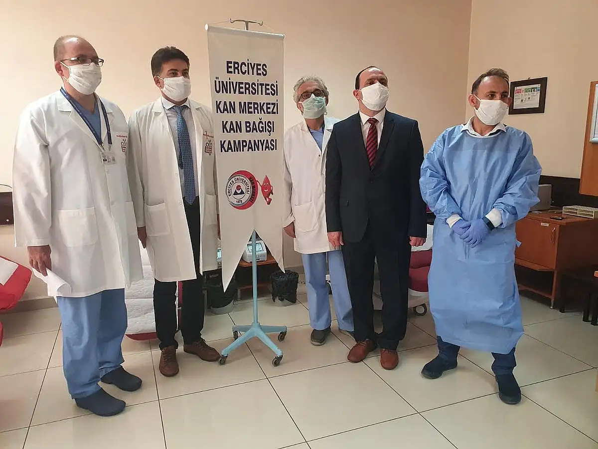 Dünyayı etkisi altına alan korona virüs ülkemizde de etkisini göstermeye devam ediyor. Salgına karşı tedbirlerin alınması ve Ramazan ayının da gelmesiyle birlikte vatandaşlar kan vermek için hastanelere eskisi kadar çok uğramıyor. Bu durum da Erciyes Üniversitesi Kan Bankası stokları azalmaya başladı. Erciyes Üniversitesi Tıp Fakültesi Hastaneleri Başhekimi Prof. Dr. Ahmet Güney, Erciyes Üniversitesi Tıp Fakültesi Başhekim Yardımcısı Prof. Dr. Musa Karakürkcü, Erciyes Üniversitesi Tıp Fakültesi Başhekim Yardımcısı Prof. Dr. Cevat Yazıcı, Erciyes Üniversitesi Hastanesi Kan Bankası Sorumlusu Doç. Dr. Ekrem Ünal ve Erciyes Üniversitesi Tıp Fakültesi Kan Bankası Ünite Sorumlusu Uzm. Biyolog Mehmet Yay vatandaşları kan vermeye davet etti.