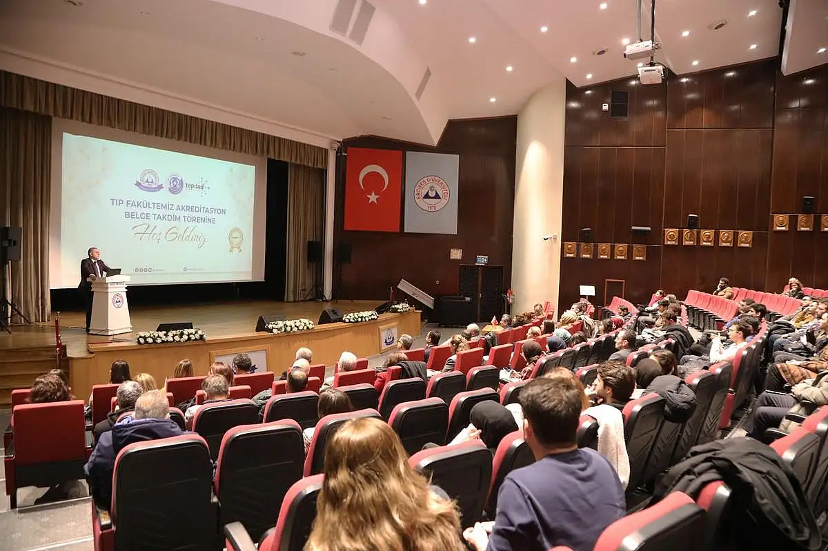 Tıp Fakültesi Dekanı Prof. Dr. İsmail Dursun ise konuşmasında akreditasyon sürecinde emeği geçen akademik ve idari personel ile öğrencilere teşekkür ederek, “Akreditasyon belgesi bir belge olmaktan öte aynı zamanda daha büyük sorumluluklar üstlenmemiz gerektiğinin bir işaretidir. Bizler tıp eğitiminde mükemmeliyet anlayışımızı sürdürerek, geleceğin hekimlerini en iyi şekilde yetiştirmeye devam etme mecburiyetindeyiz” diye konuştu.
