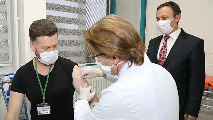 Erciyes Üniversitesi akademisyenleri tarafından Covid-19’a karşı geliştirilen ERUCOV-VAC aday aşının ilk dozu, ülkemizdeki Faz 1 ruhsatlı birkaç merkezden birisi olan ve daha önce de ulusal ve uluslararası birçok klinik araştırmayı başarı ile tamamlamış, ülkemizin diğer yerli aşıların geliştirilmesinde önemli rol alacak İKUM’da ilk gönüllü olan Nazif Durna’ya yapıldı.