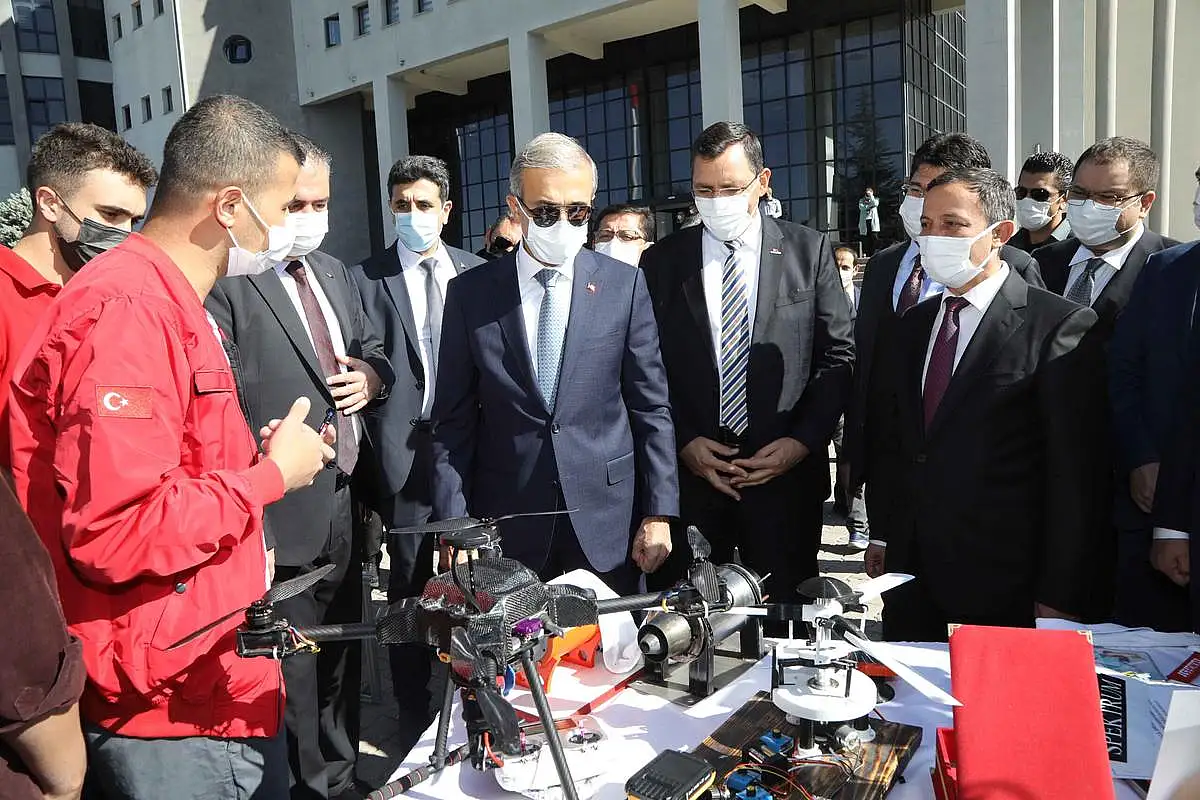 “Savunma Sanayii Üniversite Buluşmaları” kapsamında ERÜ’ye gelen Cumhurbaşkanlığı Savunma Sanayii Başkanı Prof. Dr. İsmail Demir ilk olarak öğrenciler tarafından açılan stantları ziyaret ederek, öğrencilerin projelerini inceledi.