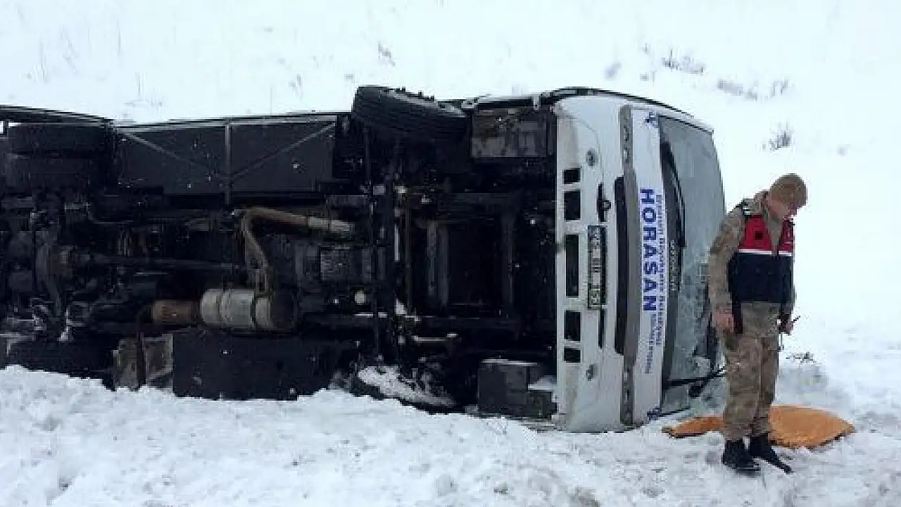 ERZURUM'DA ÖZEL HALK OTOBÜSÜ DEVRİLDİ: 1 ÖLÜ, 21 YARALI
