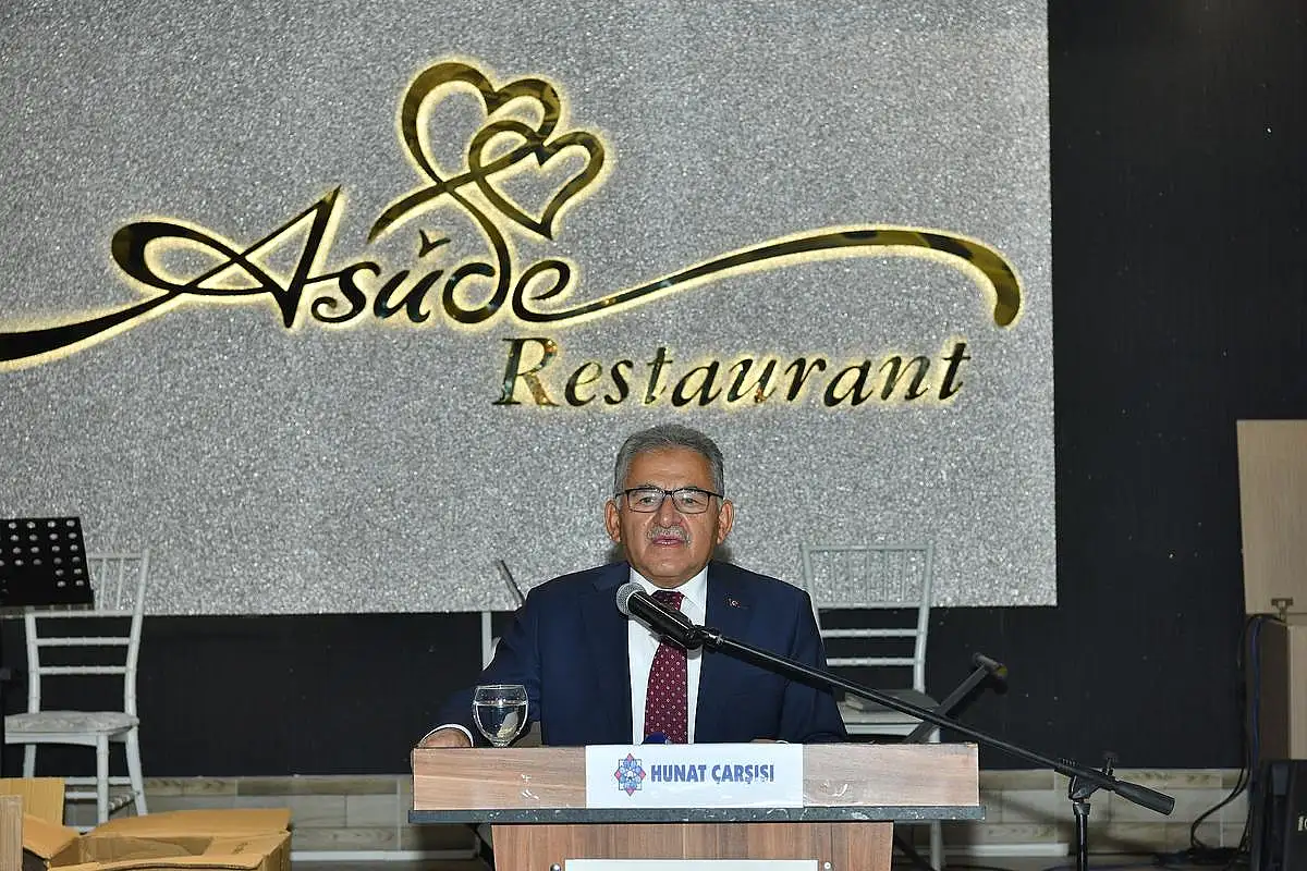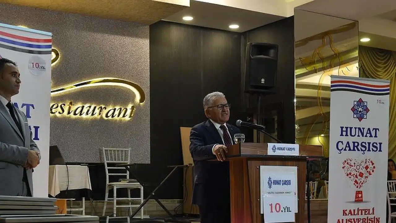 Hunat Çarşısı’nın 10. yıl kutlamalarında, ‘Esnaf dostu bir şehir olmak, bizim olmazsa olmazımız’ diyerek her zaman esnafın yanında olduklarını dile getiren Başkan Büyükkılıç, “Eline, beline ve diline sahip ol diye bu öğretiyle dünya insanlığına mal olmuş olan Ahi ahlakıyla ahlaklanmış olan siz kardeşlerimi bağrıma basıyor, her birinizi ayrı ayrı kucaklıyorum” dedi.