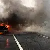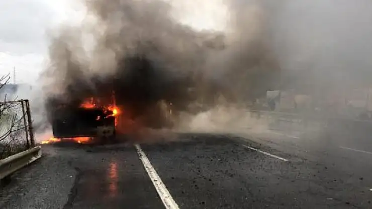 FACİANIN EŞİĞİNDEN DÖNÜLDÜ! YOLCU MİNİBÜSÜ ALEV ALEV YANDI
