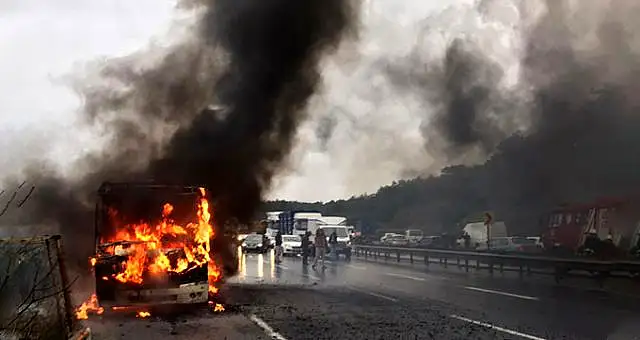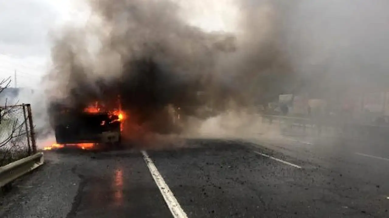 Yaralı veya can kaybı bildirimi henüz yapılmamışken olay yerinden de ilk fotoğraflar geldi. Minibüs, itfaiye ekiplerinin müdahalesi sonucu söndürüldü.