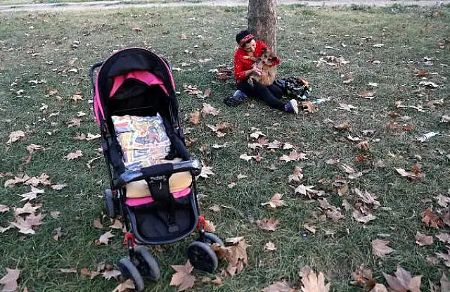 Bursa'da bir kadın, bebek arabasıyla her gün köpeğini gezintiye çıkarıyor