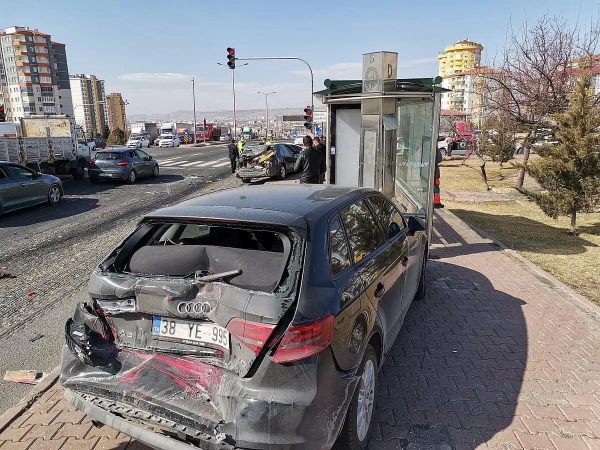 Edinilen bilgiye göre, Gökkent Mahallesi Nalçık Bulvarı üzerinde meydana gelen kazada iddiaya göre freni patlayan 46 LV 971 kamyon, trafik ışıklarında bekleyen 35 ADJ 194 plakalı Mercedes, 38 YE 995 plakalı Audi, 38 AEA 175 plakalı Seat ve 35 FM 659 plakalı Fiat marka otomobillere çarptı. Kazanın ardından olay yerine polis ve sağlık ekipleri sevk edildi. Polis, yol üzerinde güvenlik önlemi alırken, sağlık ekipleri de yaralanan 1 kişiyi ambulansla hastaneye kaldırdı. Bazılarının hurdaya döndüğü lüks otomobiller, incelemelerin ardından kaldırıldı.