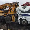 Kaza nedeniyle araçlar uzun kuyruklar oluşturulurken, vincin yol kenarına çekilmesiyle trafik kontrollü bir şekilde verildi.