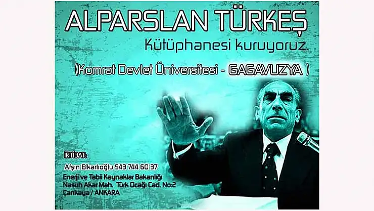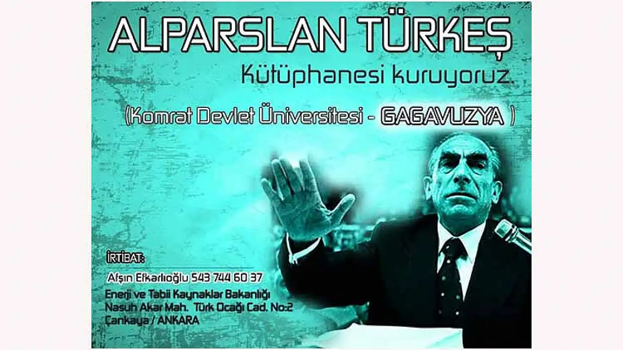 Moldovya’ya bağlı özerk bir devlet olan Gagavuzya’da bulunan Komrat Devlet Üniversitesi’ne, milliyetçi düşüncesiyle bilinen yazar Afşın Efkarlıoğlu öncülüğünde Alparslan Türkeş Kütüphanesi kuruluyor. Daha önce de Dursun Önkuzu, Süleyman Özmen, Bekir Yücel gibi isimler için devlet liselerine kütüphaneler kuran Afşın Efkarlıoğlu ve destekçileri, bu defa Gagavuzya'da bulunan Komrat Devlet Üniversitesi'ne Alparslan Türkeş Kütüphanesi kurmak için çalışmalara başladı. Okuyucuları en şık ortamda kitapla buluştururken milli motifleri kullanmayı da ihmal etmeyen proje sahipleri, destek olarak sadece kitap ve demirbaş eşya yardımı kabul ediyor.