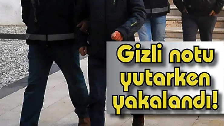 Fetullahçı Terör Örgütü/Paralel Devlet Yapılanması'na (FETÖ/PDY) yönelik bugün düzenlenen operasyonda yakalanan M.S.E. adlı zanlı, örgütün Afganistan ‘İmamı'na yazdığı tespit edilen 'çok gizli' ibareli bilgi notunu yutarken polise yakalandı.