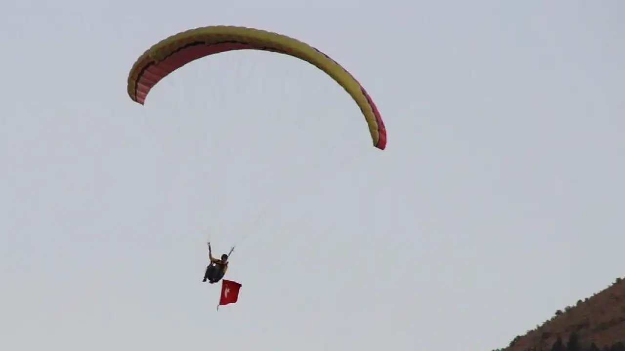 Türkiye'nin en genç yamaç paraşütü pilotu Kürşat Yılmaz, 30 Ağustos Zafer Bayramı'nın yıl dönümünde Ali Dağı'ndan uçarak gökyüzünde Türk bayrağı dalgalandırdı.