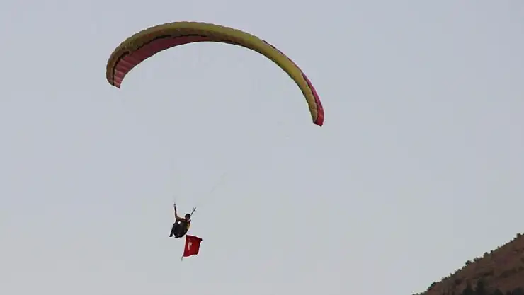 Türkiye'nin en genç yamaç paraşütü pilotu olan 15 yaşındaki Kürşat Yılmaz, Kayseri'de yamaç paraşütü meraklılarının merkezi olan Ali Dağı'ndan uçtu. 30 Ağustos Zafer Bayramı'nın yıl dönümü olması nedeniyle farklı bir uçuş gerçekleştiren Kürşat Yılmaz, gökyüzünde Türk bayrağı açarak süzüldü.