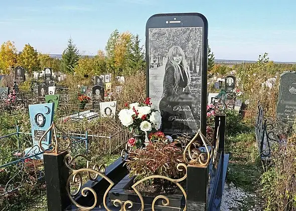 Rusya`nın Ufa kentinde sıra dışı bir mezar taşı yapıldı. Kentin Güney Mezarlığında 28 yaşındaki Rita Raisovna adlı genç kızın mezarı üzerine, çok sevdiği telefonu iPhone 6 şeklinde mezar taşı dikildi.