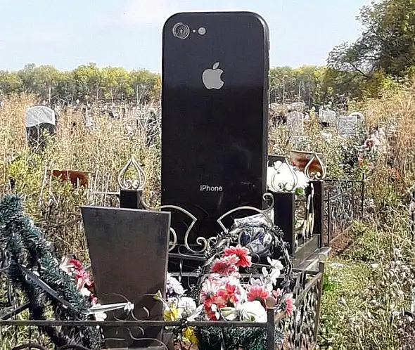 Rusya'da telefonunu çok seven genç kıza iPhone 6 model telefon şekilde mezar taşı yapıldı.