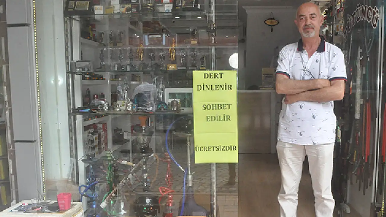 Zonguldak’ta memur emeklisi olarak hayatını sürdüren 3 çocuk babası 52 yaşındaki Nurhan Türegün, iş yerinin tanıtımı amacıyla kapısına astığı yazıyla fenomen oldu. Dükkana gelen müşteriler hem derdini anlatıp hem sohbet ediyor hemde dükkandan alışveriş yapmadan çıkmıyor.