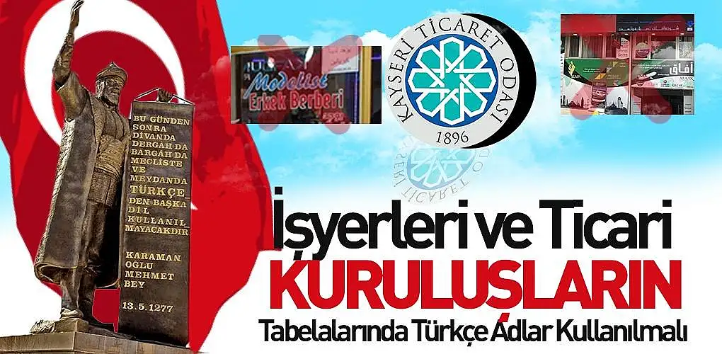 Kayseri Ticaret Odası (KTO) Yönetim Kurulu Başkanı Ömer Gülsoy, Türkçemizin korunmasını sağlamak için işyerleri ve ticari kuruluşların tabela ve reklamlarında Türkçe adların kullanılması gerektiğini söyledi.KTO Başkanı Gülsoy, işyeri ve ticari kuruluşlard