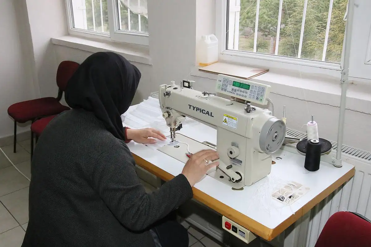 Hacılar’da, yeni tip koronavirüs (Kovid-19) tedbirleri kapsamında vatandaşlara verilmek üzere maske üretimine devam ediliyor.