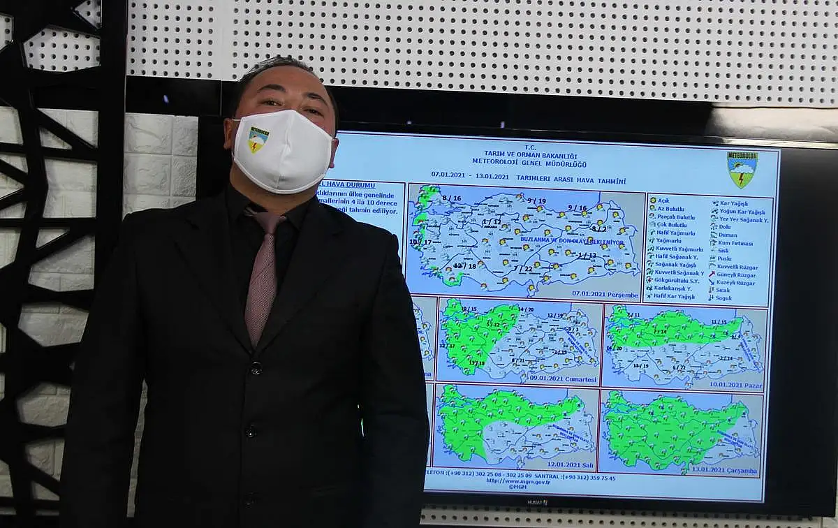 Cuma, Cumartesi ve Pazar günleri il genelinde parçalı ve az bulutlu bir hava seyredeceğini belirten Hava Tahmin Uzmanı Remzi Koçak, “Meteoroloji 7. Bölge Müdürlüğü Bölge Tahmin ve Uyarı Merkezi olarak yaptığımız son değerlendirmelere göre; yüksek basınç merkezi ve üst seviyede ki soğuk havanın etkilerinde kalmaya devam ediyor. İl genelinde beklenen kar yağışlarının oluşmayacağı yönünde tahminlerimiz bulunuyor. Cuma, cumartesi ve Pazar günleri il genelinde parçalı ve az bulutlu bir hava seyredecek. Pazartesi günü yurdun batı kesimlerine yaklaşan alçak basınç merkezine bağlı serin ve yağışlı havanın etkisiyle ilimizin kuzey ve doğu ilçelerinde Felâhiye, Akkışla, Sarıoğlan, Özvatan, Pınarbaşı, Sarız ve Tomarza ilçelerinde yağışlar görülecek fakat merkez ilçelerde ne yazık ki yağışların oluşmayacağı yönünde tahminlerimiz mevcut. Sıcaklıklar ise mevsim normallerinden 6-10 derece üzerinde seyretmeye devam edecek. Önümüzdeki hafta başından itibaren Afrika kaynaklı sıcak hava ile beraber sıcaklıkların mevsim normallerinin çok çok üzerinde seyredeceğini de belirtelim. Buradan halkımızı da bilgilendirmiş olayım. Gece ve sabah saatlerinde; sis, pus ve don yaşanacağından ve hafta boyu güneyli akışlar nedeniyle soba be karbon monoksit gazı zehirlenmeleri yaşanabileceğinden vatandaşların dikkatli ve tedbirli olmalarını rica eder, maske mesafe ve temizlik uyulduğu mutlu bir hafta geçirmelerini diliyoruz” ifadelerini kullandı.