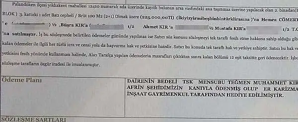 Hediye evin sözleşmesinde 'Şehidin kanı ile ödenmiştir' ibaresi