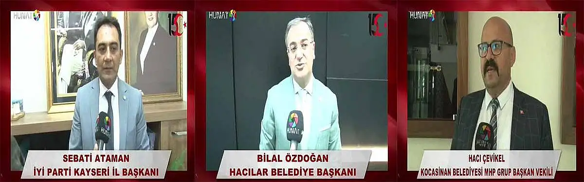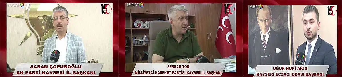 Hunat TV, 15 Temmuz yayınlarıyla gündeme damga vurdu. 15 Temmuz özel yayınında; Kayseri Büyükşehir Belediye Başkanı Dr. Memduh Büyükkılıç, Melikgazi Belediye Başkanı Dr. Mustafa Palancıoğlu, Kocasinan Belediye Başkanı Ahmet Çolakbayrakdar, Özvatan Belediye Başkanı Halit Demir, Sarız Belediye Başkanı Baki Bayrak, Hacılar Belediye Başkanı Bilal Özdoğan, Develi Belediye Başkanı Mehmet Cabbar, İncesu Belediye Başkanı Mustafa İlmek, Ak Parti Kayseri İl Başkanı Şaban Çopuroğlu, MHP Kayseri İl Başkanı Serkan Tok, İyi Parti Kayseri İl Başkanı Sebati Ataman, Yeniden Refah Partisi Kayseri İl Başkanı Önder Narin, MHP Kocasinan İlçe Teşkilat Başkanı Hacı Ali Doğan, MHP Melikgazi İlçe Teşkilat Başkanı Enes Ertuğrul Kalın, Kayseri Büyükşehir Belediyesi İyi Parti Grup Başkanvekili Kazım Yücel, Kocasinan Belediyesi MHP Grup Başkanvekili Hacı Çevikel, Melikgazi Belediyesi İyi Parti Grup Başkanvekili Adnan Kenanoğlu, ASKF Başkanı Musa Soykarcı, MMO Kayseri Şube Başkanı Akif Aksoy, Kayseri Eczacı Odası Başkanı Uğur Nuri Akın, Türk Eğitim Sen 1 Nolu Şube Başkanı Muharrem Çolak, Türk Sağlık Sen Kayseri Şube Başkanı Kamil Ünal, Tekden Grup Yönetim Kurulu Başkanı Kemal Tekden, Eğitim Bir Sen Kayseri Şube Başkanı Aydın Kalkan, SMMMO Kayseri Şube Başkanı Ali Yedikaya, Ertan Taştan Mülk Ofisi Sahibi Ertan Taştan, Sedat Kılınç İnşaat Yönetim Kurulu Başkanı Sedat Kılınç, Gıda Mühendisleri Odası Kayseri Şube Başkanı Ergül Türkaslan, Lokantacılar ve Pastacılar Odası Kayseri Şube Başkanı Altan Aydemir, Kayseri Ticaret Odası Başkanı Ömer Gülsoy ve Kayseri Erciyes Esnaf Kredi Kooperatifi Başkanı Nazmi Yücel 15 Temmuz 2016'da yaşadıklarını Hunat TV'ye anlattı.
