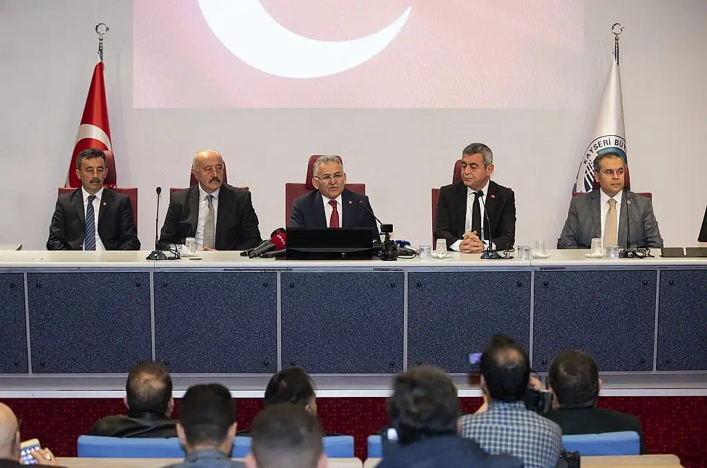 Kayseri Büyükşehir Belediyesi Meclisi’nin ortak bildirisi Büyükşehir Belediyesi Meclis Salonu’nda okundu. Bildiriyi AK Parti Grubu adına Büyükşehir Belediye Başkanı Dr. Memduh Büyükkılıç, MHP Grubu adına Özvatan Belediye Başkanı Halit Demir, İyi Parti Grubu adına Kazım Yücel, CHP Grubu adına Özgür Özer ve Büyük Birlik Partili Meclis Üyesi İmdat Güven imzaladı.