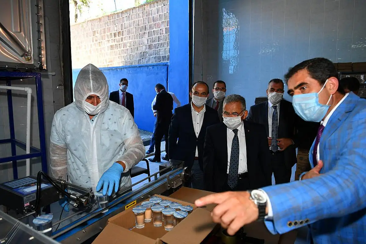 Başkan Büyükkılıç, COVİD-19 teşhisiyle yatan hastalar ile karantina altındakilere özel üretilen su tesislerinde incelemelerde bulunarak, KASKİ'nin el ve ortam dezenfektanı ile kolonya üretimi yapmasıyla 2 milyon liralık kamu menfaati sağladığını açıkladı.