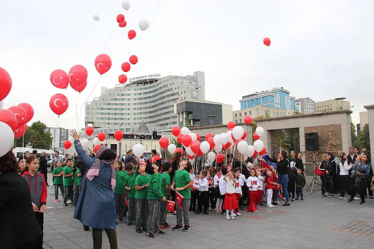 Tören, İstiklal Marşı’nın ardından öğrencilerin ellerindeki balonları gökyüzüne bırakması ile son buldu.
