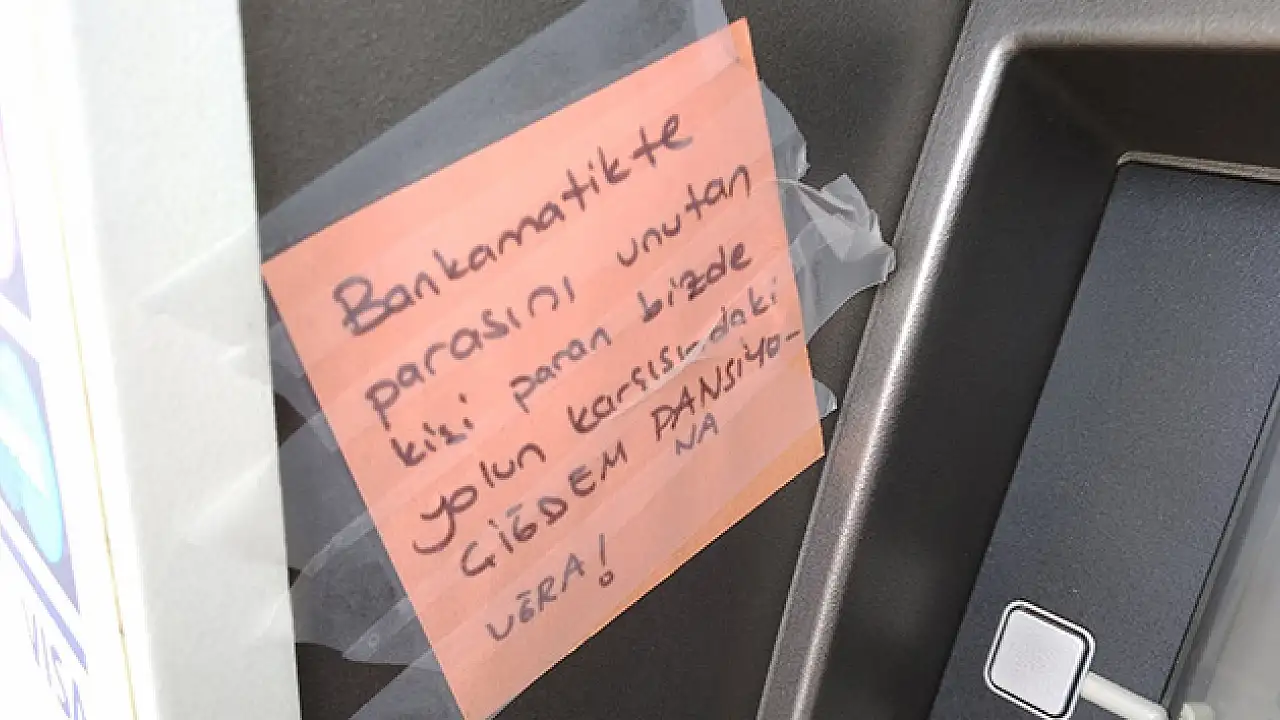 Ayşekadın semtinde bir süpermarketin yanında bulunan ATM’nin üzerinde bir miktar para bulundu. Vatandaş, bulduğu parayı ATM’nin karşındaki bir pansiyona teslim etti. Parasını unutan kişi için ATM’nin üzerine kağıt üzerine "Bankamatikte parasını unutan kişi paran bizde. Yolun karşısındaki Çiğdem Pansiyona uğra" ifadeleri yazıldı.