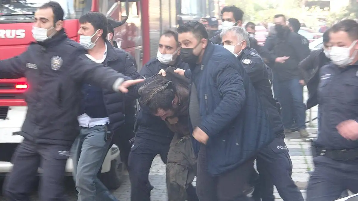 Şahıs kadını yakarak yakarak öldürdü. Evde yangın çıkarken şahıs gözaltına alındığı sırada arbede yaşandı.