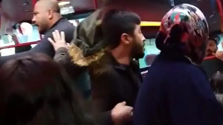 Çevredeki vatandaşların araya girmesi ile sakinleşen saldırganlara, minibüsün içerisindeki yolcular tepki gösterdi. Kaydedilen görüntülerde kadınlardan birinin "Kapıyı açın, çocuk delirdi" dediği duyuluyor.