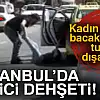 Olay, dün saat 18.00 sıralarında Ümraniye İstiklal Mahallesi’nde meydana geldi. İddiaya göre, cadde üzerinde kadın yolcuyla beraber seyir halinde olan taksi şoförüyle aralarında henüz bilinmeyen bir nedenle tartışma çıktı. Bunun üzerine şoför aracını durdurarak kadınla tartışmaya başladı. Tartışmanın büyümesi üzerine sinirlen taksi şoförü, arka koltukta oturan kadını bacağından tutarak dışarıya attı. Neye uğradığını şaşıran kadın yere düşüp vücudunu çarptıktan sonra ayağa kalktı. O esnada şoför ise aracına binerek kaçmaya çalıştı. Yerden kalkan kadınla birlikte çevredeki bir vatandaş kaçan şoförün aracına yumruk ve tekme attı. O dehşet anları ise cep telefonu kamerasına saniye saniye yansıdı.