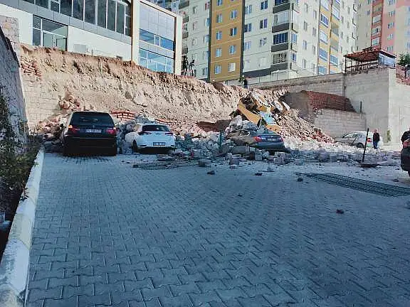 KAYSERİ,(BGC)- Kayseri’de iş makinasının çalıştığı sırada istinat duvarı yıkıldı. Ölen ya da yaralananın olmadığı olayda molozların altında kalan araçlarda maddi hasar oluştu.