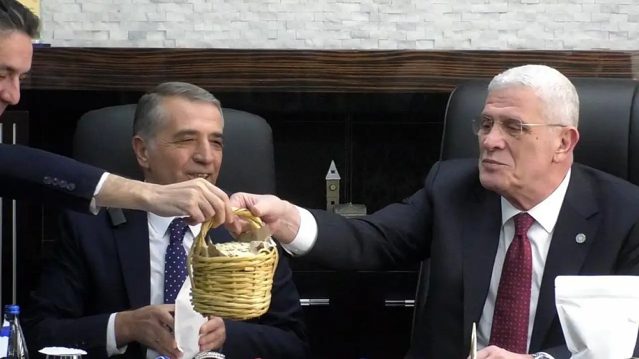 İYİ Parti Genel Başkanı Müsavat Dervişoğlu, bir dizi ziyarette bulunmak üzere Kayseri’ye geldi. Dervişoğlu’na Belediye Başkanı Koç, Tomarza’nın üretimi olan kabak çekirdeğini ikram etti.