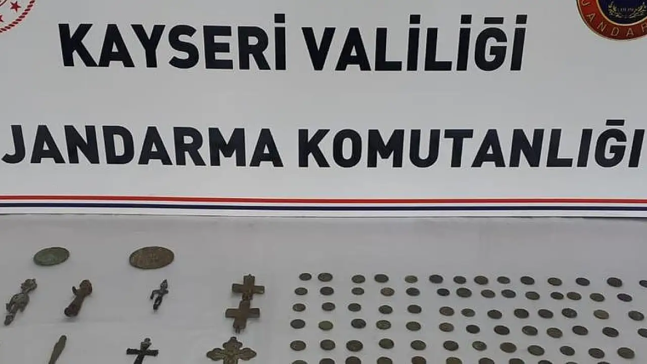 Kayseri İl Jandarma Komutanlığı ekiplerince yapılan çalışmalarda Roma ve Bizans Dönemi'ne ait 153 sikke ve 15 adet tarihi obje ele geçirildi.Olayla ilgili 5 kişi gözaltına alındı.