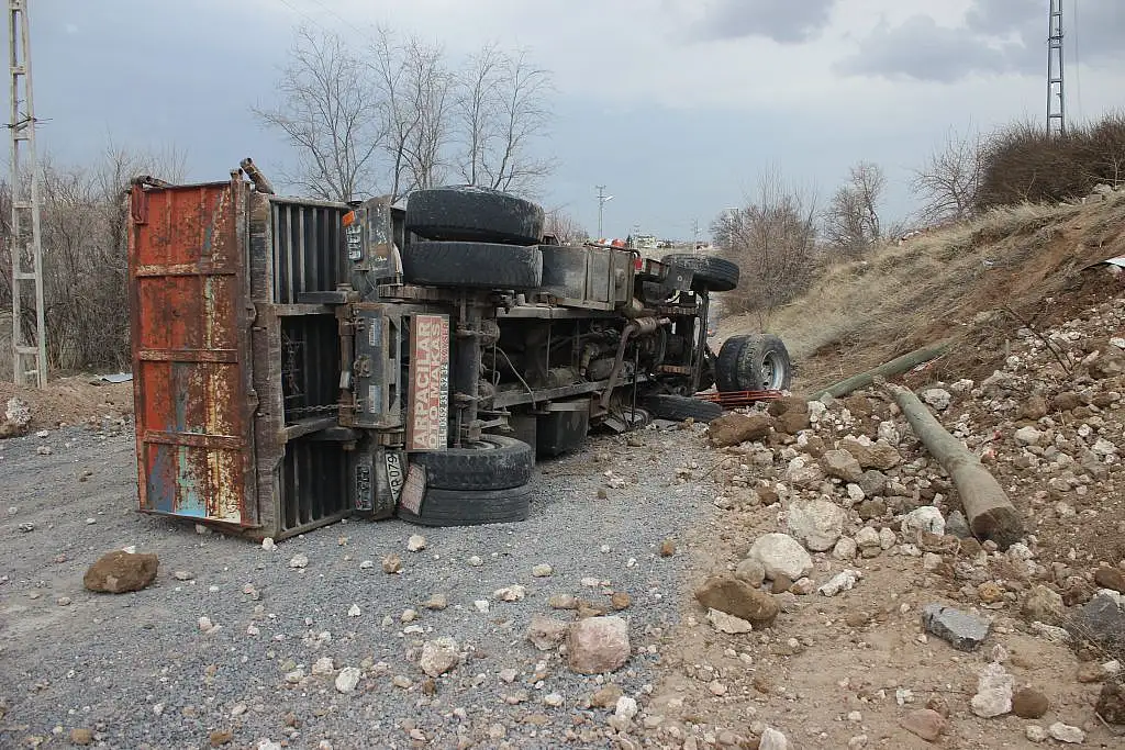 Kayseri'de kamyonun şarampole yuvarlanması sonucu meydana gelen trafik kazasında 3 kişi yaralandı.