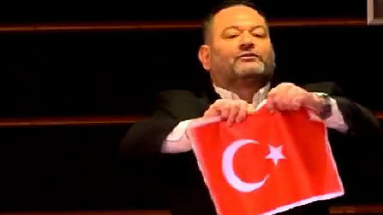 Azeri vekil Adil Aliyev, Avrupa Parlamentosu'nda Türk bayrağını yırtan ırkçı Yunan milletvekili Ioannis Lagos'a 'Türkiye'nin bayrağına el uzatan soytarı milletvekili bilmelidir ki iki devlet bir millet olarak kardeş Türkiye'nin bayrağına el uzatanın parma