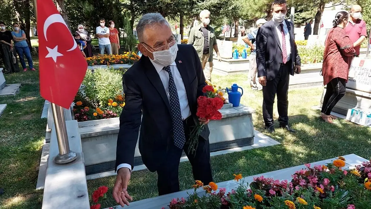 Kayseri protokolü Kartal Şehitliğinde bir araya gelerek şehit aileleri ile bayramlaştı ve şehit mezarlarına karanfil bıraktı.