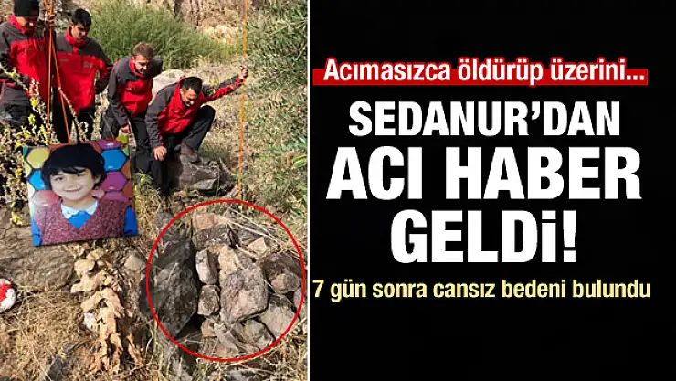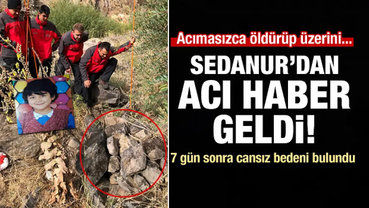Kars'ın Kağızman ilçesine bağlı Paslı köyünde bir hafta önce kaybolan Sedanur Güzel'in (9) cansız bedenine ulaşıldı. Kars Valisi Rahmi Doğan, "Sedanur'un öldürüldüğü kesin, üzeri taşlarla örtülmüş olarak bulundu" dedi.