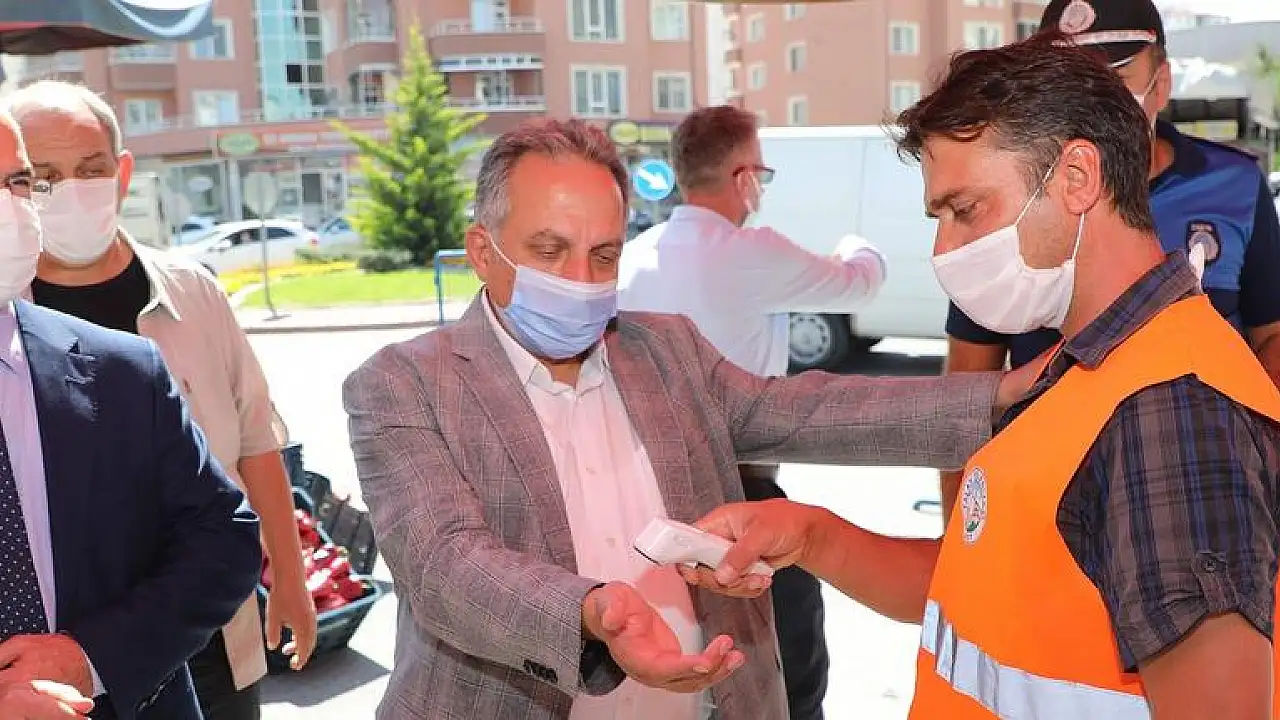 “Biraz önce gelirken tebliğ edildiği için sizinle paylaşmak istedim.” diyen Başkan Yalçın, gelen evrakı kendisi okuyarak şu bölümü paylaştı: “Koronavirüsün salgınının toplum sağlığı ve kamu düzeni açısından oluşturduğu riski yönetme, hastalığın yayılma hızını kontrol altına tutma amacıyla Talas Kaymakamlığımızca birçok çalışma yapılmaktadır. Bu çalışmalardan biri de ilçemizdeki pazarların denetlenmesidir. Tarafımdan bizzat yapılan denetimlerde pazarlarımızda giriş çıkışlarda kontrolün sağlanarak pazara gelen vatandaşların ateşlerinin ölçülmesi, tezgahlar arasında olması gereken mesafenin sağlanması, zabıta memurlarınca maske, mesafe, temizlik ve gürültü kirliliği denetimlerinin yapılması konularında çok başarılı bir çalışmanın yürütülmekte olduğu memnuniyetle müşahede edilmektedir. İlçemizdeki pazarlar düzenli, temiz, planlı; maske, mesafe ve temizlik yönünden örnek nitelikte pazarlardır. Pazarlardaki bu güzel ve güvenli tabloyu oluşturan belediye başkanımızı, başkan yardımcımızı, müdürlerimize ve belediye çalışanlarımızı tebrik ediyor, bu hizmetten faydalanan bütün Talaslı vatandaşlarımız adına teşekkür ediyorum. Talas Kaymakamı Yaşar Dönmez.”